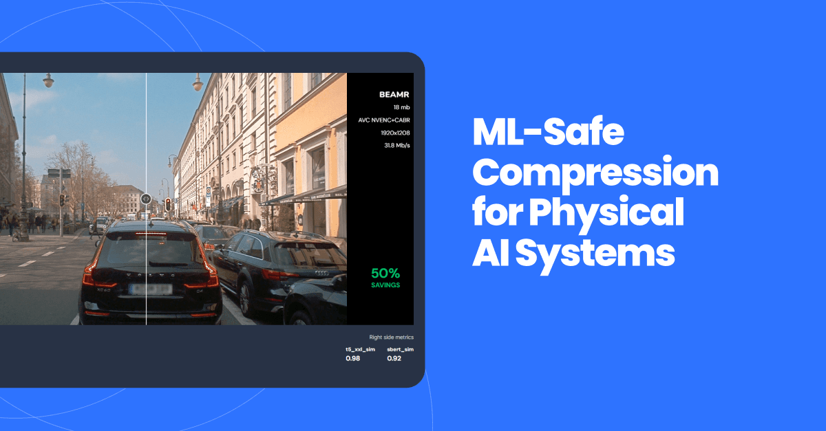 Beamr's technology optimizes video data for both human vision and machine vision - enabling autonomous vehicle companies managing up to 500 petabytes each to overcome overwhelming infrastructure and cost pressures. Beamr delivers up to 50% video data file size reduction while preserving critical machine learning model accuracy